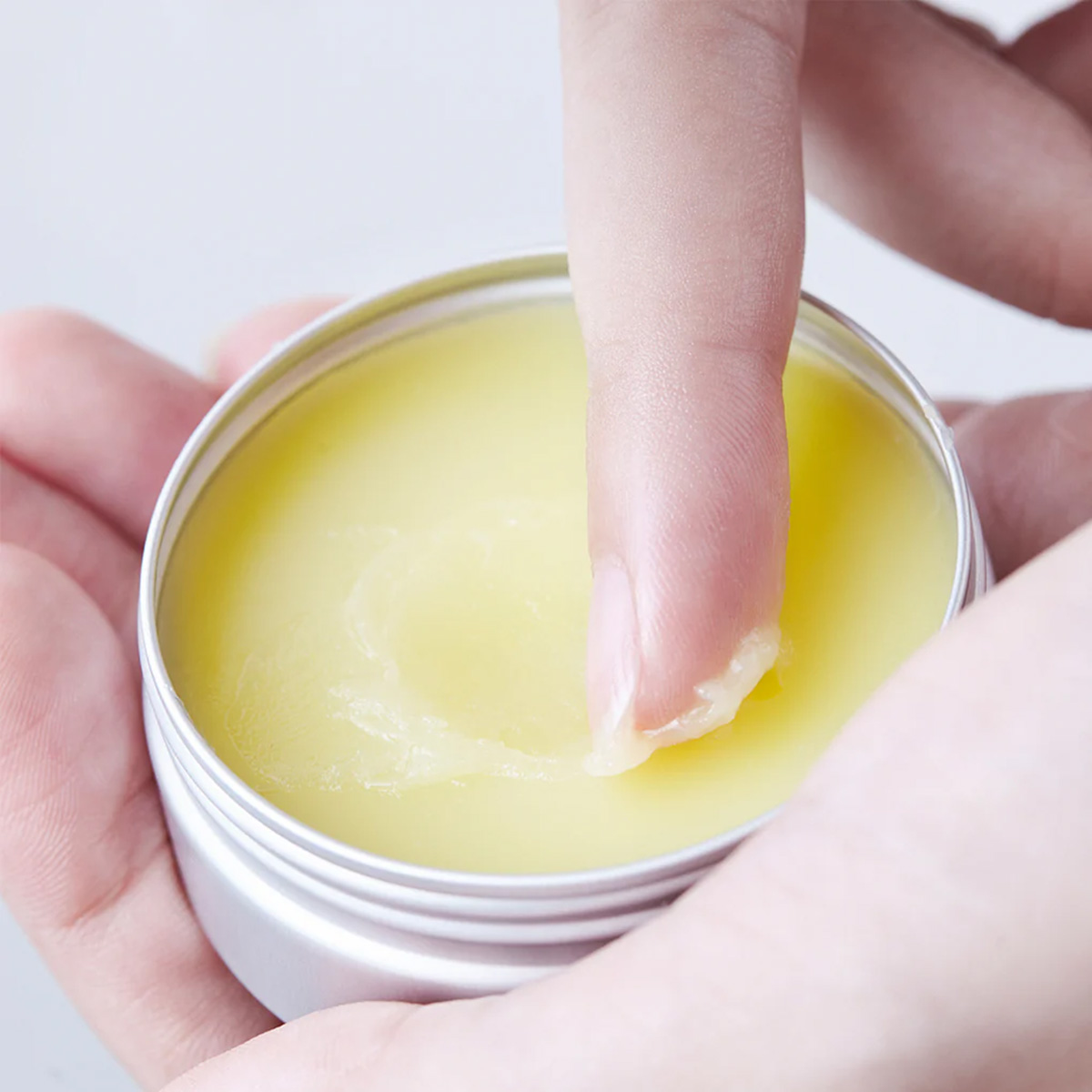 手の体温で軽く温め、柔らかくしてから、乾燥が気になる部分に優しくなじませます。